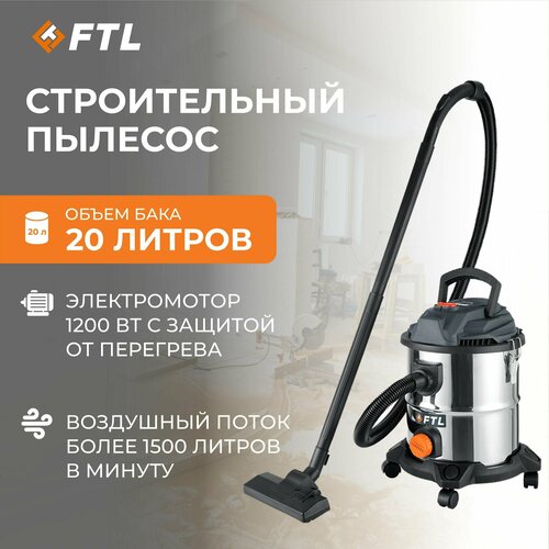 серебристый, оранжевый, черныйПылесос строительный FTL VC 20 предназначен для уборки бытовых и рабочих помещений, в том числе после проведения ремонтных и отделочных работ.