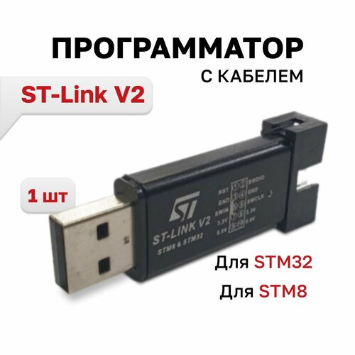 Программатор ST-Link V2 для STM32 и STM8 с крышкой и кабелем, 1 шт.