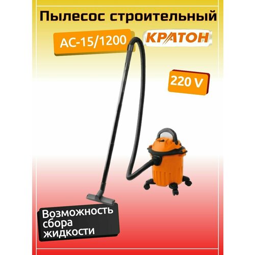 Пылесос строительный DENZEL SVC15, 1200 Вт, бак 15 л, шланг 2 м (28201)