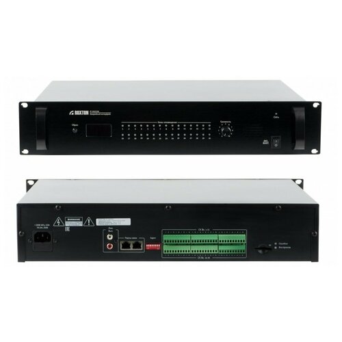 Комбинированный преобразователь ROXTON RP-8264 (далее моноблок) работает в составе цифро-аналоговой системы оповещения ROXTON-8000. Представляет собой блок 19” исполнения, совмещающий в себе функции многоприоритетного предварительного усилителя, 8-ми зонного селектора/коммутатора 4-х внешних усилителей мощности на 8 линий громкоговорителей, блока автоматического контроля линий громкоговорителей и зарядного устройства. Моноблок снабжен входами для подключения сигналов от пожарной станции, от систем централизованного оповещения (ЦСО) о чрезвычайных ситуациях (ГО и ЧС). Моноблок дистанционно управляется и контролируется дополнительными устройствами системы ROXTON-8000, в комбинации с которыми представляет собой особо эффективную систему оповещения. Комбинированный преобразователь ROXTON RP-8264 имеет пожарный сертификат и может использоваться в качестве технического средства СОУЭ, ЛСО, ОСО. Основные функции: 8-ми зонная базовая конфигурация; расширение системы до 512 зон; до 5-ти приоритетов в локальном режиме;