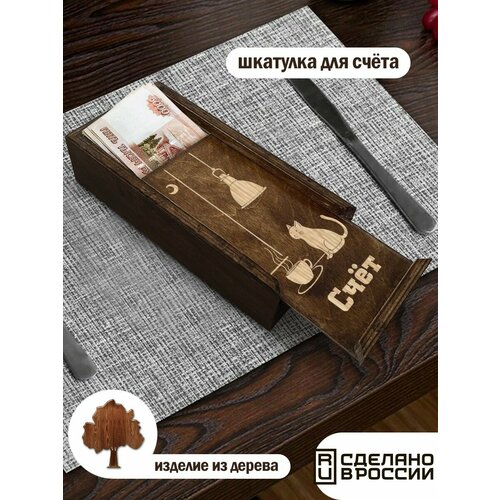 Счетница для ресторана, кафе, бара из дерева котик (кафе, милота, минимализм, счёт) - 600