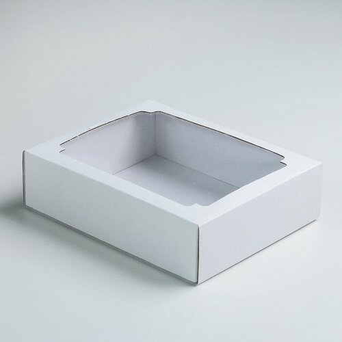 Коробка сборная без печати крышка-дно белая с окном 18 х 15 х 5 см