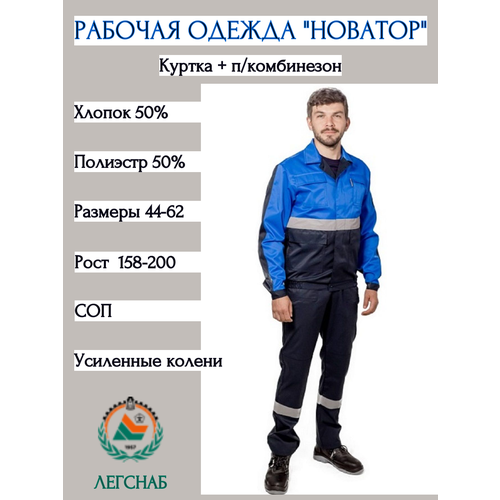 Одежда для рабочих/ спецодежда рабочая/ костюм летний рабочий "Новатор" (50хл/50пэ,-василек, куртка + пк) 56-58/170-176