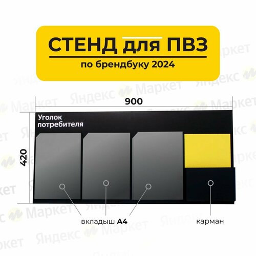Стенд уголок потребителя 2024 год прозрачный из органического стекла с дистанционными держателями 490х475мм