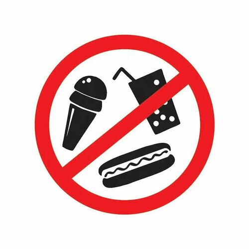 Наклейка запрещающий знак "С продуктами питания вход запрещен" 150*150 мм