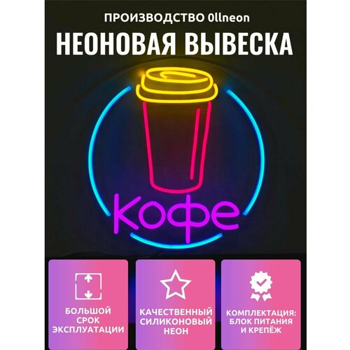 Неоновая вывеска кофе/COFFEE, 55 см.