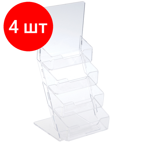Комплект 4 шт, Подставка для визиток настольная OfficeSpace, 4 секции