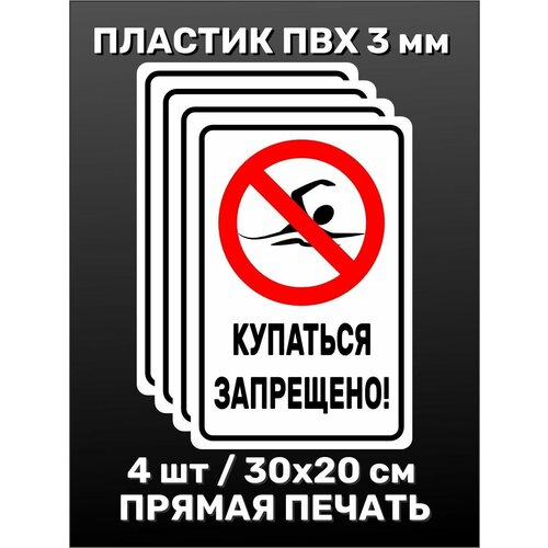 Информационная табличка на дверь - Купаться запрещено! 30х20 см 4шт