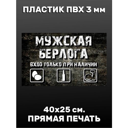 Прикольная информационная табличка на дверь - Мужская берлога 40х25см