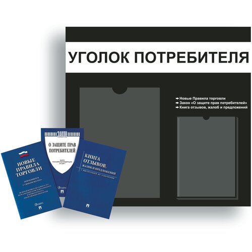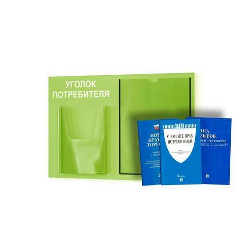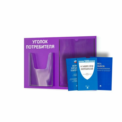 Уголок потребителя, покупателя 2023 + комплект книг (3 шт.) стенд информационный 490*335 мм c 1 объемным карманом А5 и 1 плоским карманом А4