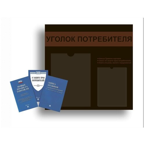 Уголок потребителя, покупателя 490*475 мм с 1 плоским карманом A4 и 1 объемным карманом А5 + комплект книг (3 шт.) редакция 2023 года