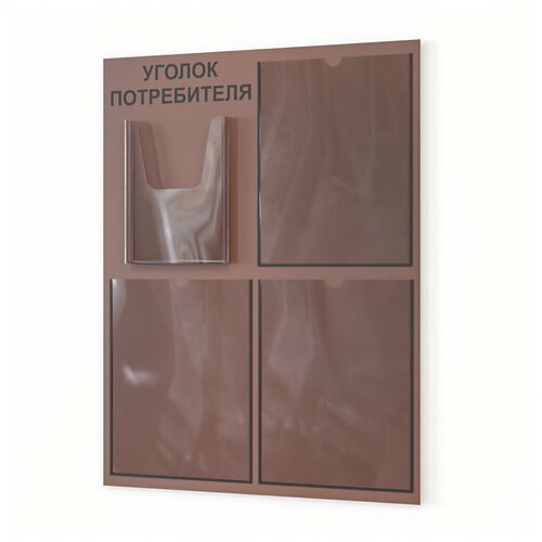 Уголок потребителя 490*650 мм (стенд информационный, доска информационная, уголок покупателя) с 3 плоскими карманами А4 и 1 объемным карманом А5