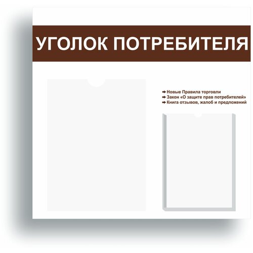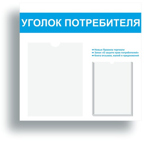 Уголок потребителя 490*475 мм (стенд информационный, доска информационная, уголок покупателя) с 1 плоским карманом A4 и 1 объемным карманом А5