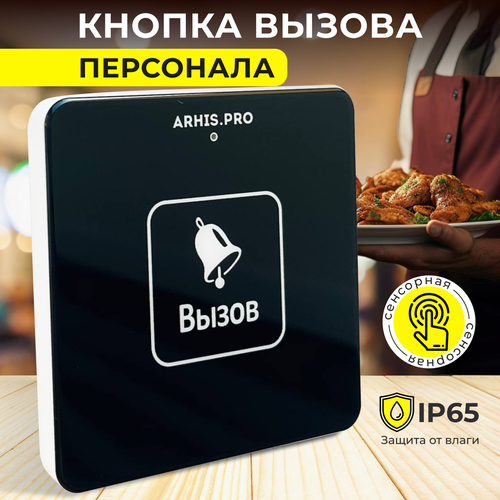 Сенсорная кнопка вызова персонала, официанта в ресторане, кальянщика на часы-пейджер и информационное табло. Радиус 50-60 м.