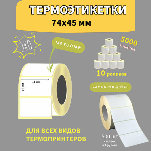 Термоэтикетки 74х45 мм 500 шт ЭКО 10 рулонов самоклеящиеся стикеры наклейки