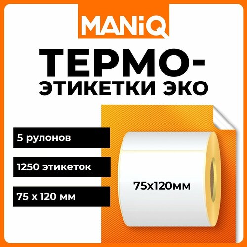 Термоэтикетки ЭКО 75х120 мм 250 шт 5 рулонов MANiQ ТЭ75120250