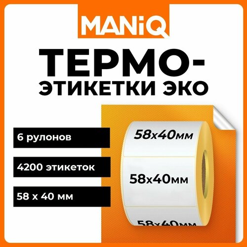 Термоэтикетки ЭКО 58х40 мм 700 шт 6 рулонов MANiQ ТЭ5840700
