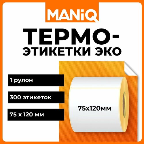 Термоэтикетки ЭКО 75х120 мм 300 шт 1 ролик MANiQ ТЭ75120300