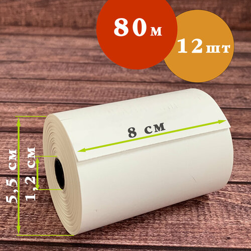 Лента чековая 80 мм термо, 80 м, 12 шт