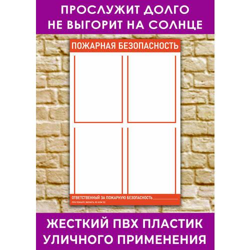 Стенд настенный из пластика - 3шт (ПВХ 3мм) с карманами "пожарная безопасность", 600х800 мм, УФ печать, Дешево