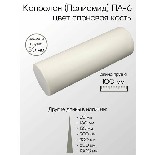 Капролон белый (Нейлон) ПА-6 стержень диаметр 50 мм 50x300 мм
