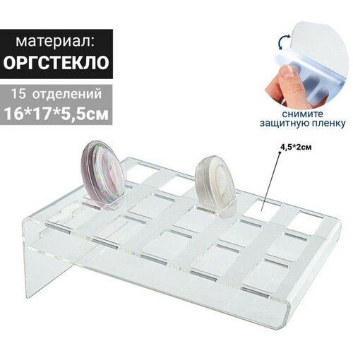 Подставка под тени на 15 шт, 16*17*5,5 см, оргстекло 2 мм, В защитной плёнке
