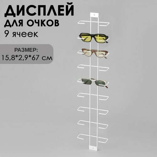 Дисплей для очков 9 ячеек, 15,8×2,9×67 см, цвет белый