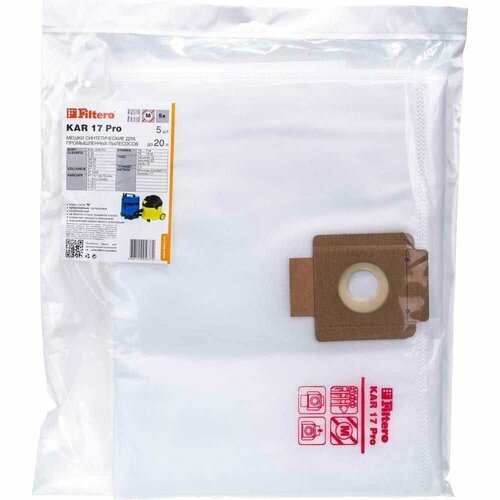 Мешки для пылесоса Karcher, Cleanfix , Columbus, Taski трехслойные синтетические Filtero KAR 17 Pro 20л 5шт 05677