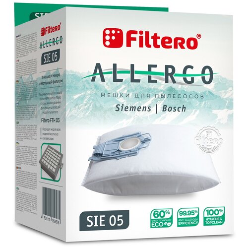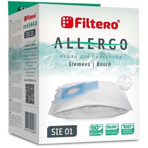 Мешки-пылесборники Filtero SIE 01 Allergo, для пылесосов Bosch, Siemens, 4 штуки, моторный и микрофильтр