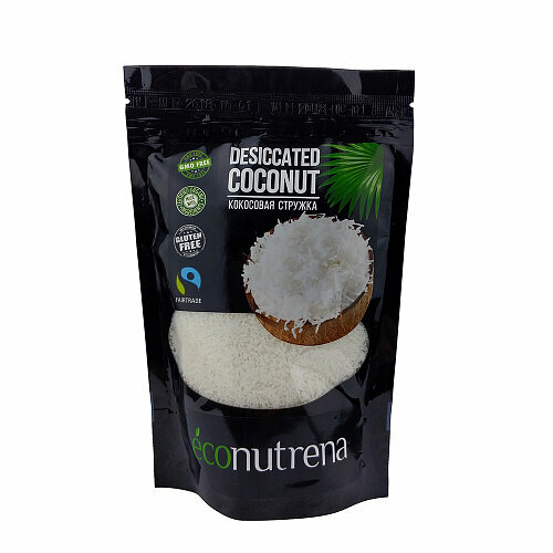 Кокос белая стружка низкой жирности Econutrena, 150 гр.