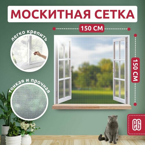 Москитная сетка на окно еврогарант, клейкая сетка на липучке белая 150 х150 см