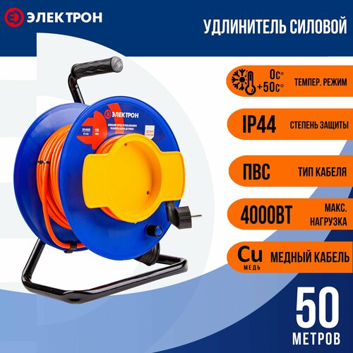 Удлинитель силовой 50м ПВС 2х2,5 (б/з) 1 розетка 4000 Вт Электрон на катушке