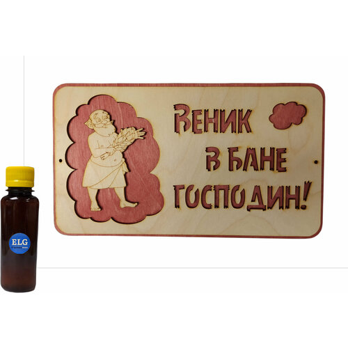 Табличка для бани "Веник в бане Господин!" 28х16 см + ароматизатор для бани ELG 100мл