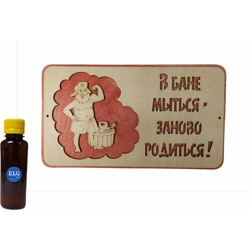Табличка для бани "В бане мыться заново родиться!" 28х16 см + ароматизатор для бани ELG 100мл