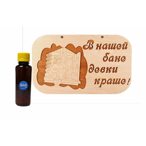 Табличка для бани "В нашей бане девки краше", дерево, 47х28 см + ароматизатор для бани ELG 100мл