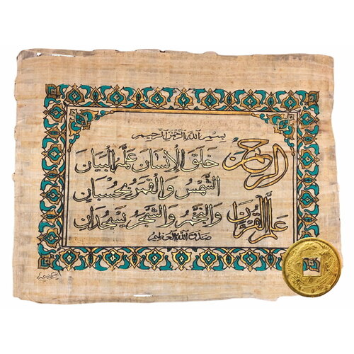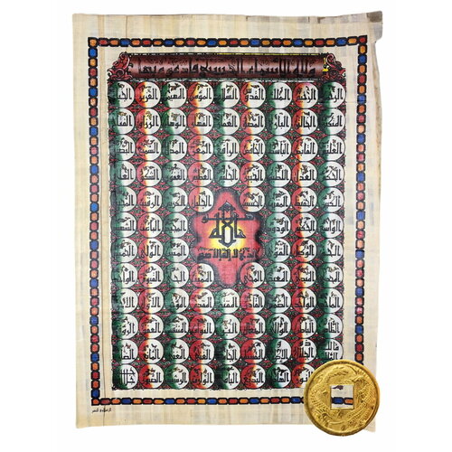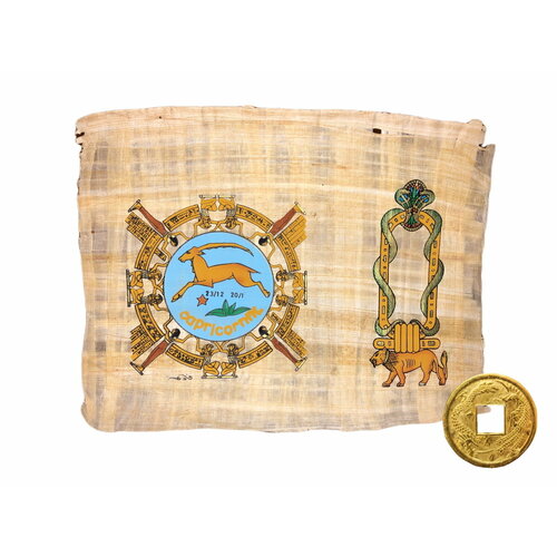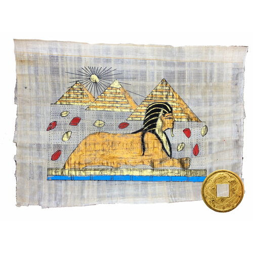 Холст из папируса с рисунком №89 (33 х 22) + монета "Денежный талисман"