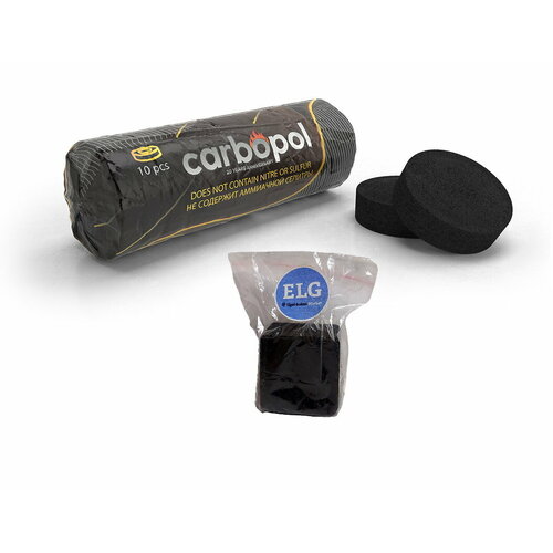 Уголь кадильный быстроразжигаемый древесный в упаковке 10 таблеток, диаметр 35мм + кубик угля ELG