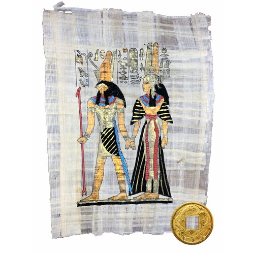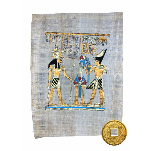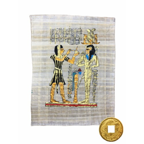 Холст из папируса с рисунком №76 (35 х 26) + монета "Денежный талисман"