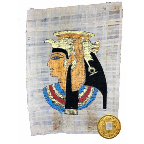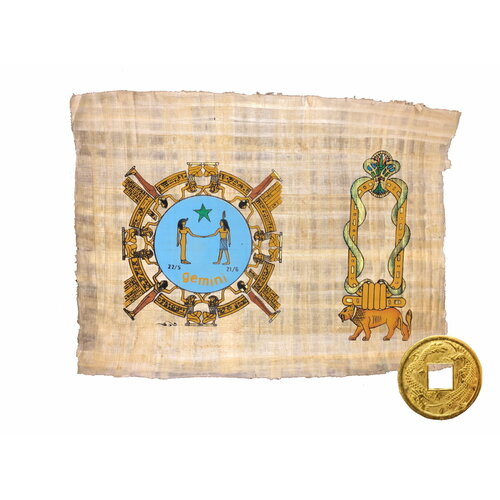 Холст из папируса с рисунком №91 (31 х 21) + монета "Денежный талисман"