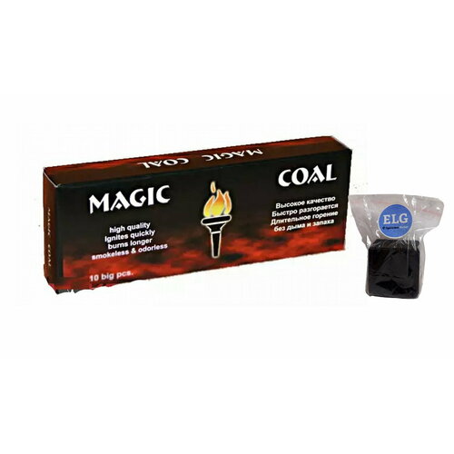 Уголь кадильный древесный в упаковке 120гр 10шт (30х25х20) + кубик угля ELG