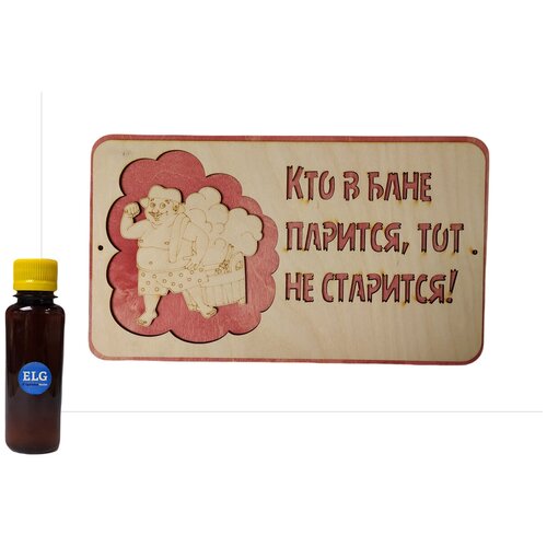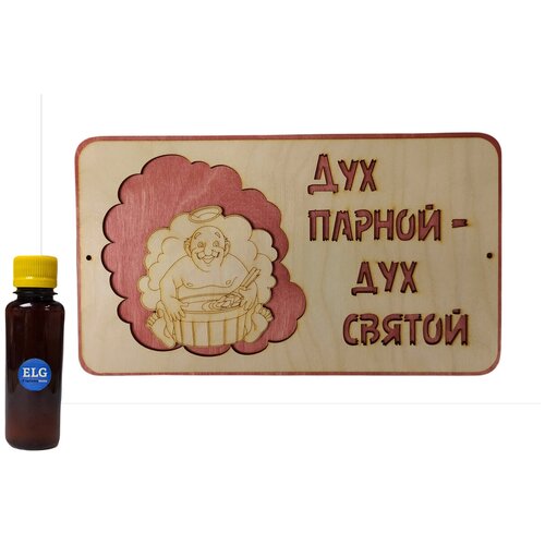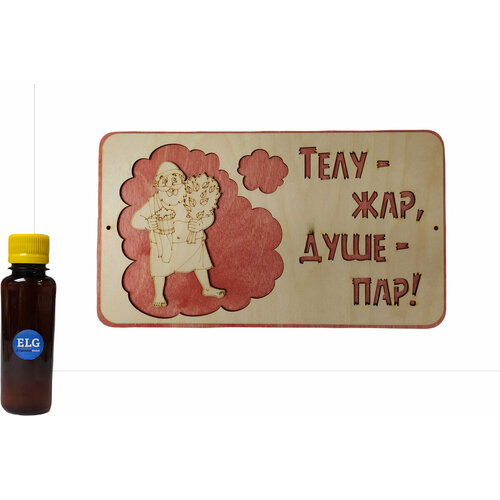 Табличка для бани "Телу жар, Душе-пар" 28х16 см + ароматизатор для бани ELG 100мл