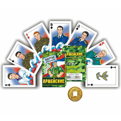 Карты игральные Армейские 36 листов (7,5х5 см) + монета "Денежный талисман"