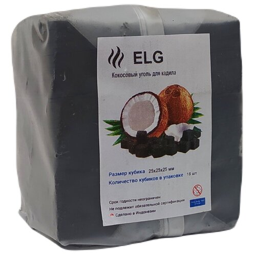 Уголь кадильный кокосовый ELG в упаковке 18 кубиков, размер кубика 25х25х25мм