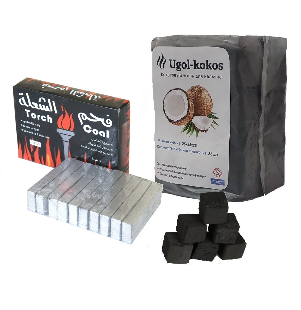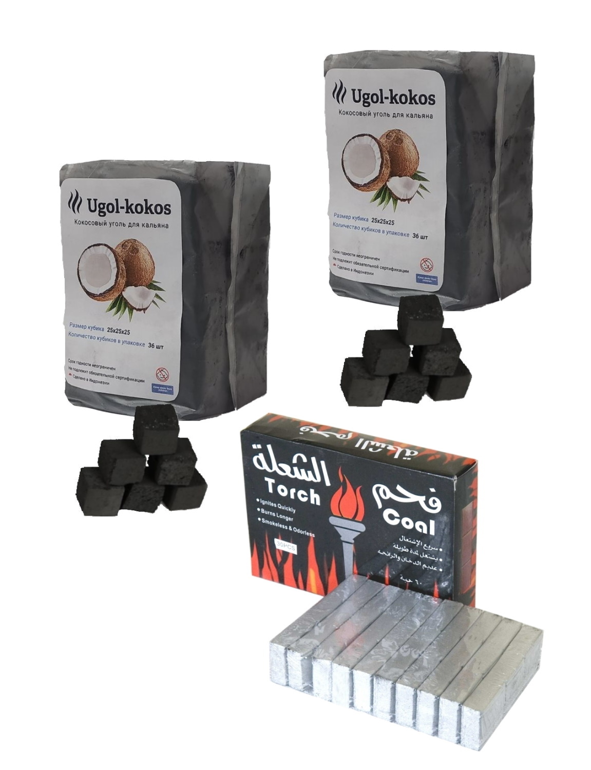 Набор угля для кальяна Ugol-Kokos Premium 25 мм 36 кубиков, 500 г, Torch 30 шт, 200 г 600013868734