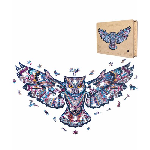 Пазл деревянный 20х22,5 см, 85 деталей, сова на закате детский новогодний