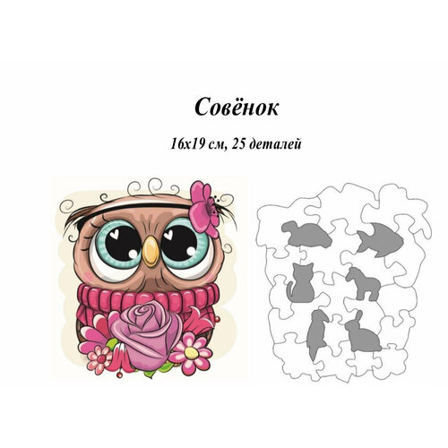 Пазл деревянный 16х19 см, 25 деталей сова детский новогодний