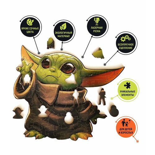 Пазл деревянный 23х20 см, 80 деталей "Йода" новогодний детский