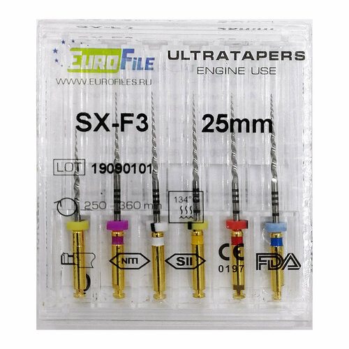 Ultratapers Engine Use SX-F3 - набор никель-титановых машинных файлов, 25 мм, 6 шт/упак