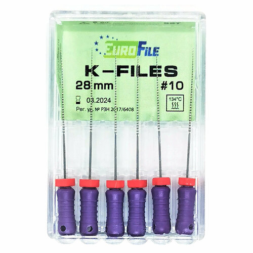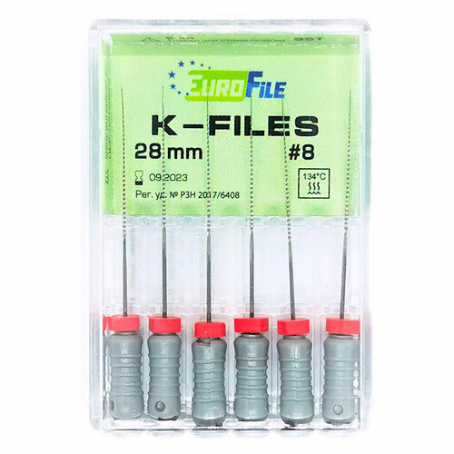 K-Files - ручные стальные файлы, 28 мм, N 08, 6 шт/упак