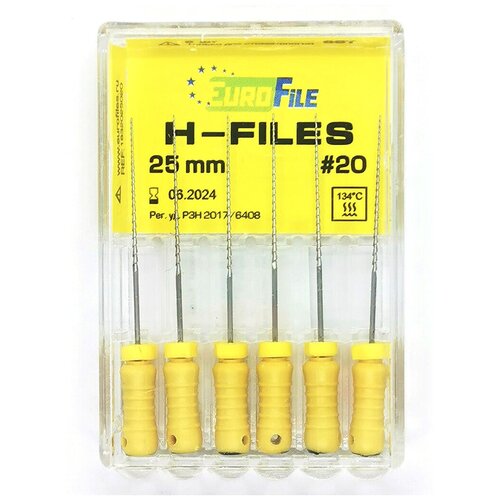 H-Files - ручные стальные файлы, 25 мм, N 20, 6 шт/упак